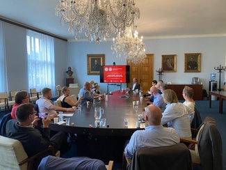 ![]() Kuva: Professori David Kohout pitämässä luentoa Tsekin urheiluoikeudesta Karlovan yliopistolla. |